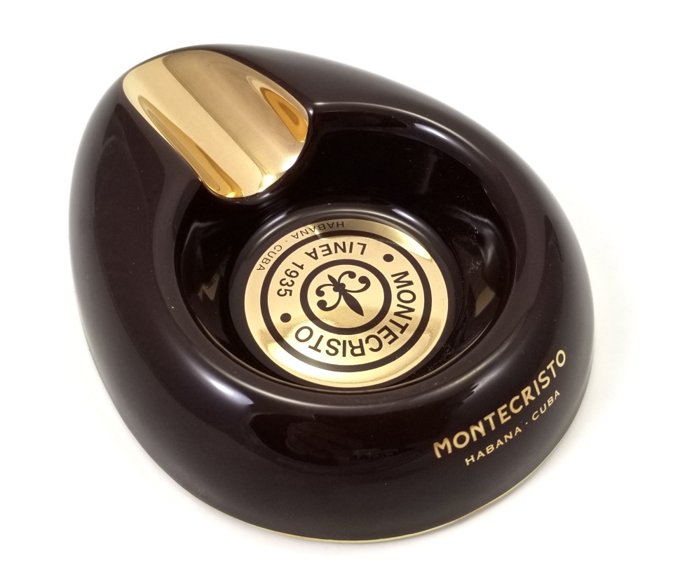Let your cigars rest in this premium quality, “Montecristo” ceramic ashtray. This superb ashtray displays the new “Linea 1935” logo. This ceramic porcelain ashtray is dark brown with gold accents and is representative of the artwork for the Montecristo Linea 1935 cigar packaging.