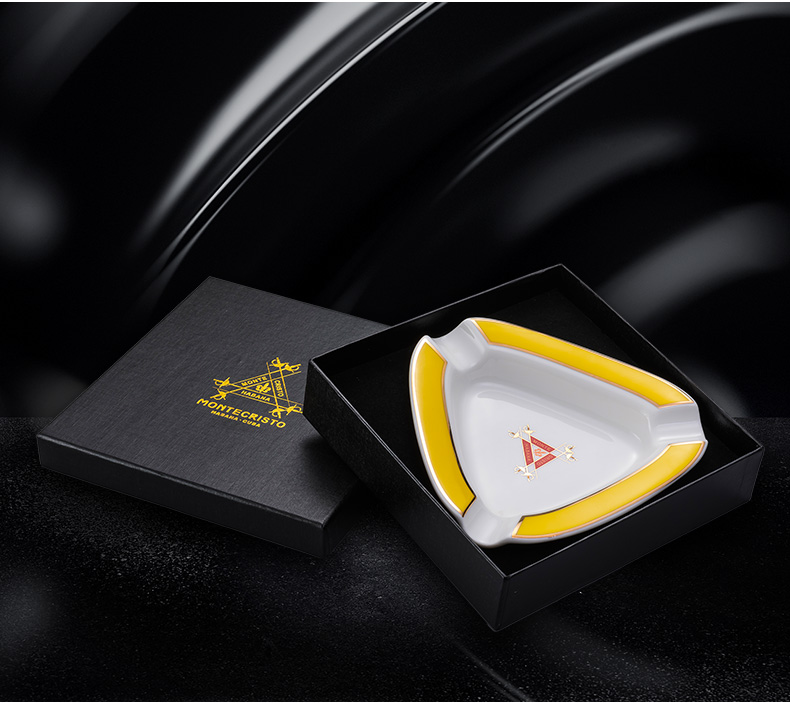 The Montecristo Ashtray stands out with its unique triangular design, symbolizing the harmony and precision that the Montecristo name represents. Crafted from high-quality ceramic and finished in a crisp white glaze, this ashtray radiates sophistication while complementing any décor, from a private cigar lounge to a professional office setting.