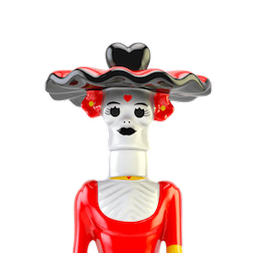 This tequila is crafted at Casa Maestri in Jalisco, Mexico. It’s double-distilled in copper pot stills from 100% blue Weber agaves that are harvested at peak maturity. After the piñas (hearts) of the agaves are harvested, they are slowly cooked and left to ferment, before the liquid is distilled. Then, the tequila is poured into barrels that are used to hold American whiskey, letting the spirit mature for 12 to 18 months. Dona Celia Añejo tequila is inspired by the skeletal La Calavera Catrina, one of the most prominent images of Death in Mexico and an integral part of the imagery of the Day of the Dead celebrations. The ceramic bottle is hand-painted and shaped like an elegant skeletal lady, making for a unique and attractive presentation.